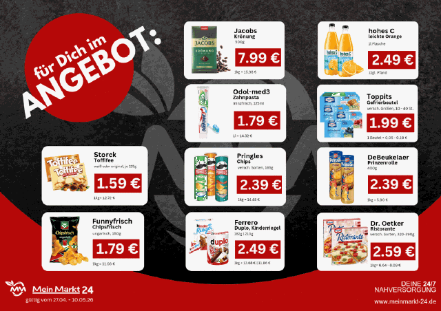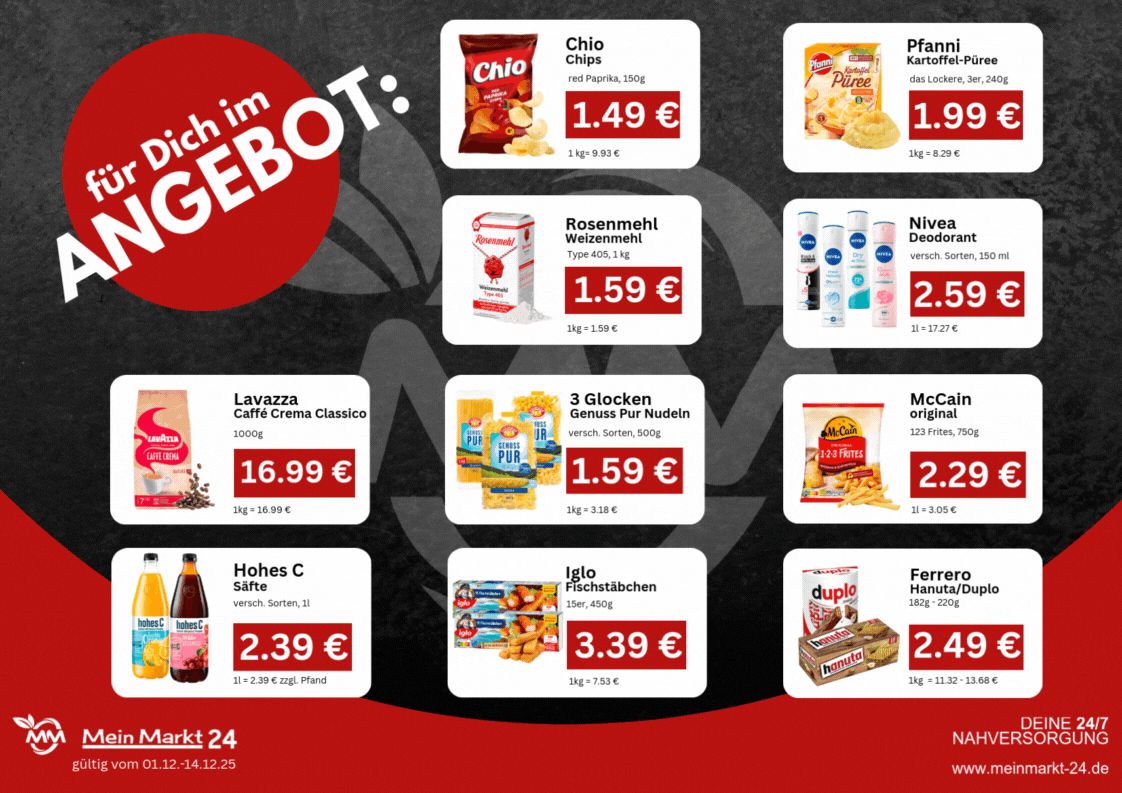 Auch 24/7-Nahversorger müssen immer im Gespräch sein und ihren Kunden wechselnde Angebote bieten. Daher gibt es in allen teilnehmenden Mein Markt 24-Standorten ein Angebot, das alle zwei Wochen wechselt.