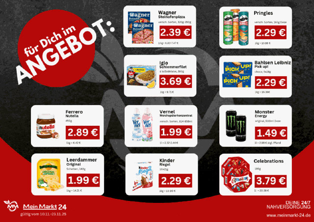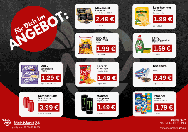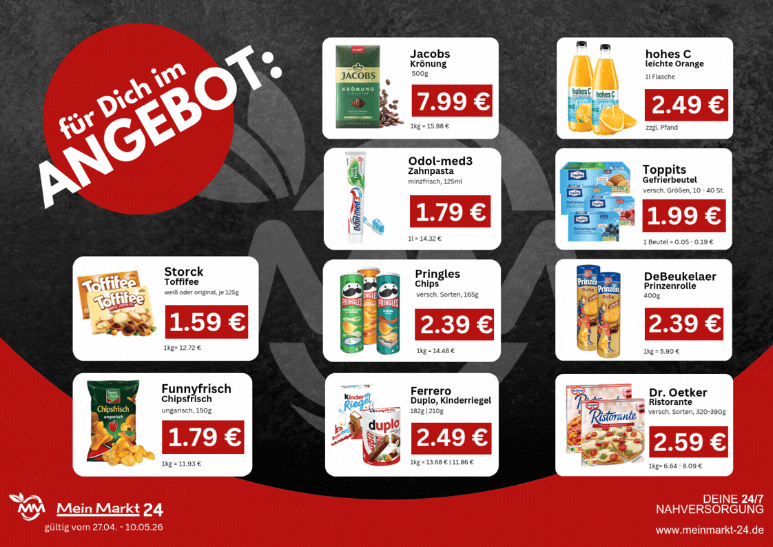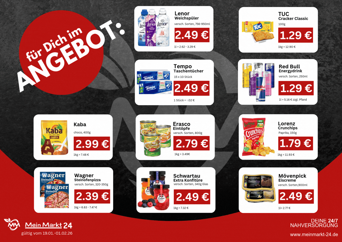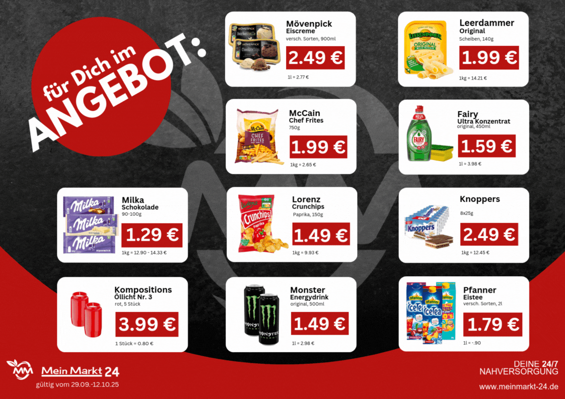 Auch 24/7-Nahversorger müssen immer im Gespräch sein und ihren Kunden wechselnde Angebote bieten. Daher gibt es in allen teilnehmenden Mein Markt 24-Standorten ein Angebot, das alle zwei Wochen wechselt.